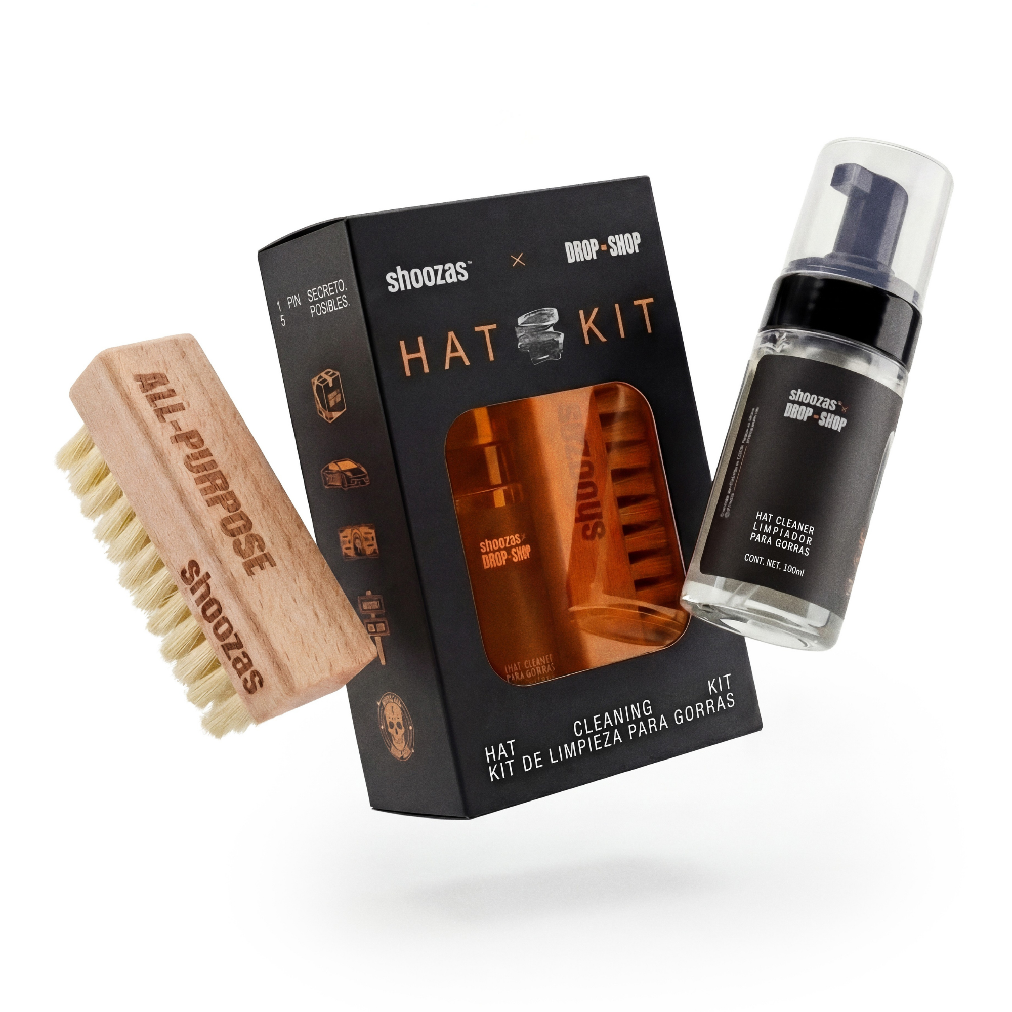 Shoozas y Drop-Shop unen fuerzas para lanzar el Hat Kit Limited Edition, el kit de limpieza para gorras más premium del mercado. Diseñado meticulosamente para quienes buscan mantener sus gorras impecables, como nuevas, en todo momento.